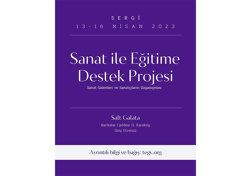Türkiye’nin güncel sanat galerileri ve sanatçılarını bir araya getiren “Sanat ile Eğitime Destek” sergi projesi, 13 - 16 Nisan tarihleri arasında Salt Galata’da sanatseverlerle buluşuyor.