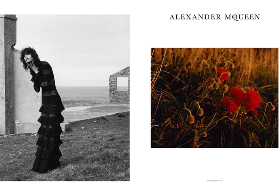 Moda dünyasının norm dışı tasarımcılarından biri Alexander McQueen... İngiliz tasarımcının 2010 yılındaki vefatından sonra markası Alexander McQueen moda hayatına devam ediyor. Hala tartışmaya açık olan konu, markanın tasarımcı hayattayken daha sükseli bir grafik çizip çizmemesi olsa da Alexander McQueen yeni kampanya karelerini sundu. Kreatif Direktör Sarah Burton'ın İskoçya'nın doğal ve vahşi yaşamından yola çıkarak atmosferini oluşturduklarını belirttiği kampanyanın fotoğrafları Jamie Hawkesworth'a ait. Çoğunlukla siyah beyaz formatta ilerleyen çekimler, Sonbahar/Kış 2016 koleksiyonunun hakim olduğu satenler, özel ışıltılı nakışlar ve uçuşan incelikteki elbiselerden oluşan detaylarını sunuyor. Romantik havanın estiği yeni kampanyanın modeli ise Mica Aganaraz.