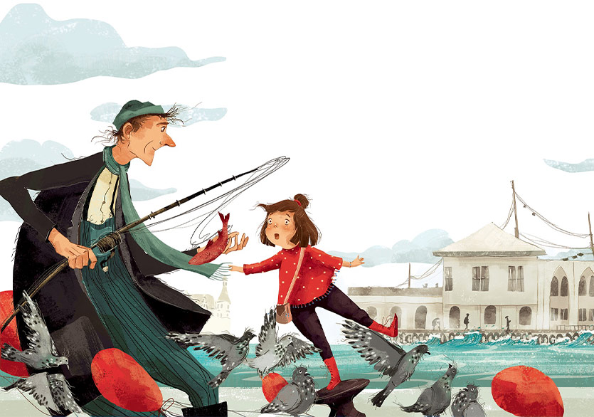 Pellicioli, giriş cümlesinde İstanbul’u “teknelerin, insanların, duaların ve sıcak çayın hiç eksik olmadığı çok eski bir şehir” olarak tanımlıyor ve sonrasında bu gizemli şehirde şiirsel bir yolculuğa başlıyor. Kitabı okuyanlar bir kız çocuğuyla birlikte, tarihi yarımadada hayallerden taşan bir gezintiye çıkıyor.Vapurdan Galata Köprüsü'ne, oradan Mısır Çarşısı'na… Bazen bir balıkçı, bazen bir simitçi, bazen vapurun kaptanı, bazen de akordiyon çalan çocuk bu keyifli gezintiye sevgiyle, nazikçe, sevinçle eşlik ediyor.
