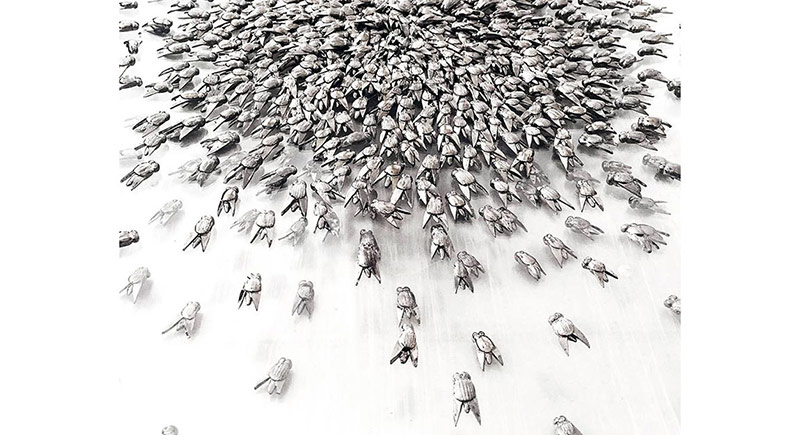 Melis Buyruk'un porselen çamuruna, el ile şekil vererek tek tek ürettiği ve bu malzemenin üretim prosesindeki tüm zorluk ve sürprizlere tabi olan sinekler, serginin temelini ve aslını oluşturuyorlar. “Bir-sürü” 15 Ocak tarihine dek ziyaret edilebilir.