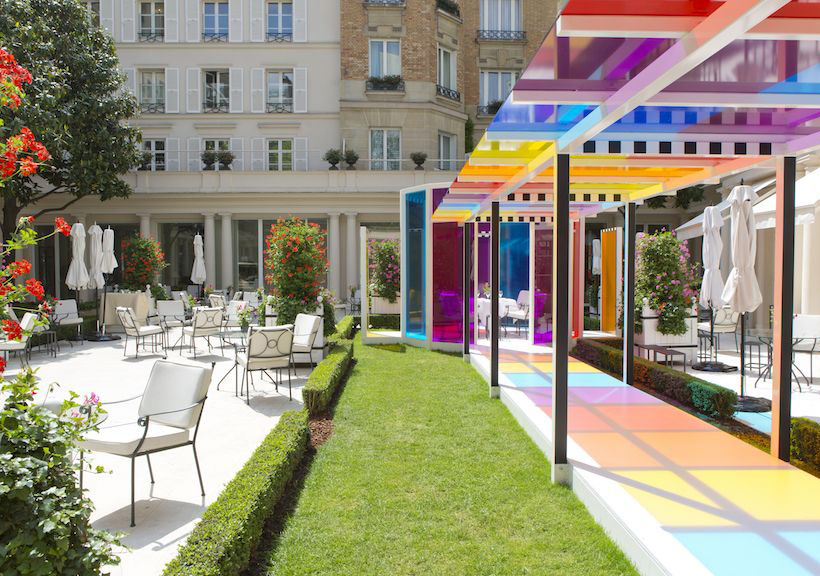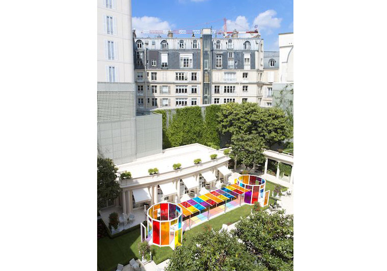 Sanat ve mimarlığı oyuncu noktalarda birleştiren Fransız kavramsal sanatçı Daniel Buren’ın Le Bristol Paris otelinin bahçesinde kurduğu kameriye göz kamaştırıyor!