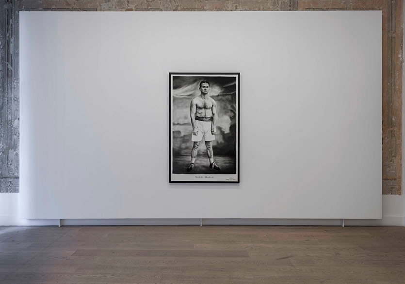 Orijinalleri birer hatıra kartpostalı olarak üretilmiş olan, dolayısıyla belgelediği kişinin tarihsel bir önem ifade ettiğini (ya da etmeye niyetlendiğini) düşündüren bu fotoğraflar, Mahir’in öyküsünü aydınlatmakta yetersiz kalıyor. Nitekim, tarih yazmaya duyulan doyumsuz arzuyla öne sürülen ve zaman içerisinde doğru kabul edilmeye başlanan çeşitli bilgiyle, bir mitosun ana kahramanına dönüşen Sabri Mahir, gerçeklikten saptırılmış bir popüler kültür anlatısına hapsoluyor. Sabri Mahir’den birkaç yıl önce doğan, benzer bir mizaca sahip olduğu anlaşılan ve tıpkı Mahir gibi ölümüne dair detaylar meçhul olan boksör-şair Arthur Cravan, sergide Mahir’in karakterini tamamlayıcı ve tanımlayıcı bir rol alıyor. Dönemin sanat ve edebiyat çevrelerinde ayrıksı karakteri ve kışkırtıcı tavırlarıyla nam salan Cravan’ın şiirlerinden alıntıların sergideki portrelerle yan yana getirilmesiyle, iki şahsiyetin sınırları erimeye ve birbirine karışmaya başlıyor.