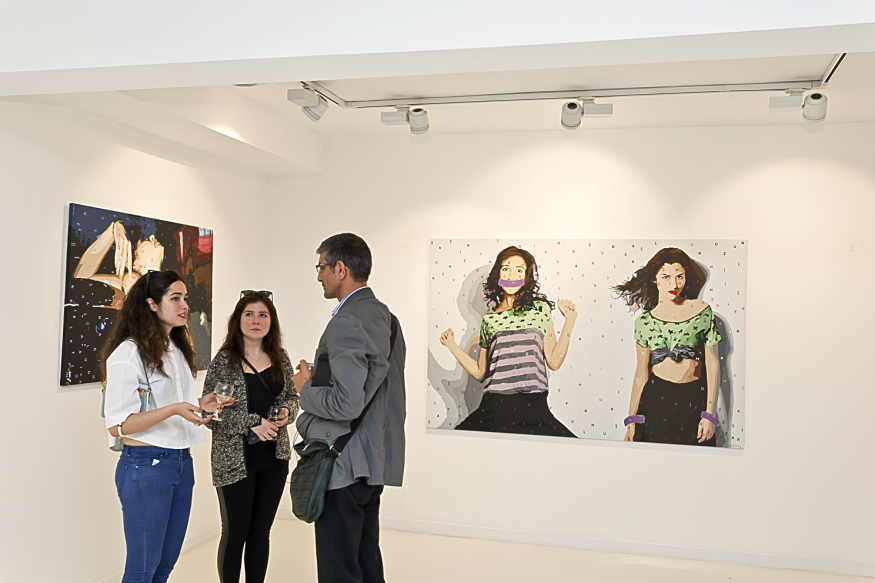 Deniz Gökduman, tuval üzerine akrilik çalıştığı resimlerinin figür konturlarında yarattığı zengin etkiyle yer yer dijitale, yer yer illüstrasyona selam gönderirken çoklu renk armonisiyle de kadınların çok renkliliğini, değişkenliğini yansıtır.