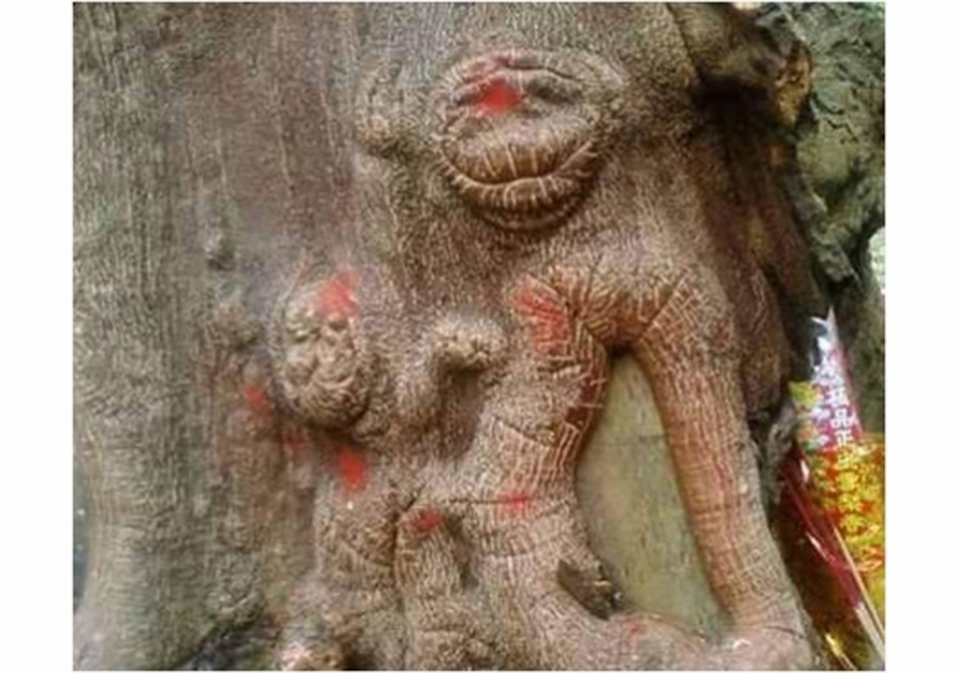 Bulutların ya da yiyeceklerin yüzeylerinde görünen dini mistik figürler çoğu zaman geçici bir deneyim olarak kalıyor. Ama 2007 yılında bir ağacın nasırlaşmış kabuğunda görülen maymun şekli, yerel inançlarla ilişkilendirilerek kısa sürede bir kült haline geldi. Çin mitolojisindeki maymun tanrı Sun Wukong’ın veya Hindu mitolojisinde Hanuman’ın ortaya çıkışı olarak benimsenip ağacın çevresi bir sunak haline getirildi. Bu tanrılara hediyeler sunmanın uğur ve şans getireceğine inanılıyor. Kayıtlara geçmiş güncel bir kült olarak araştırmacıların ilgisini çekiyor.