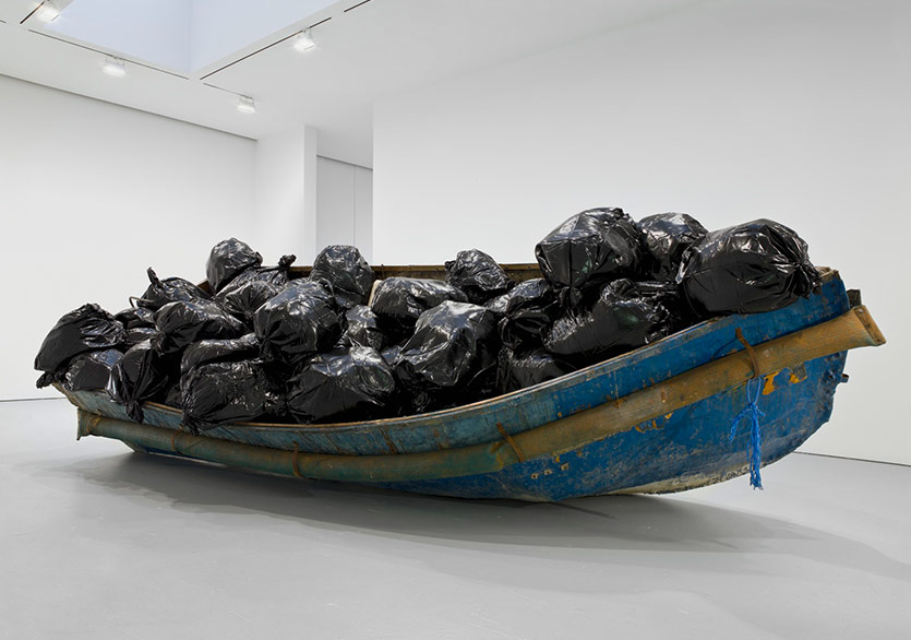 Tekneyi Küba’daki mültecilerin Florida kıyılarındaki enkazından aldım. 2011’de ilk kez denizle göç gerçeğini ayırt ettim. Sonra 2013’te lsmpedusa isimli çizimleri yapmaya başladım. Denizdeki mülteci fotoğrafları o zamandan interneti işgal etmeye başlamıştı fakat botu ilk düşündüğümde onun gerçek olması gerektiğini biliyordum.