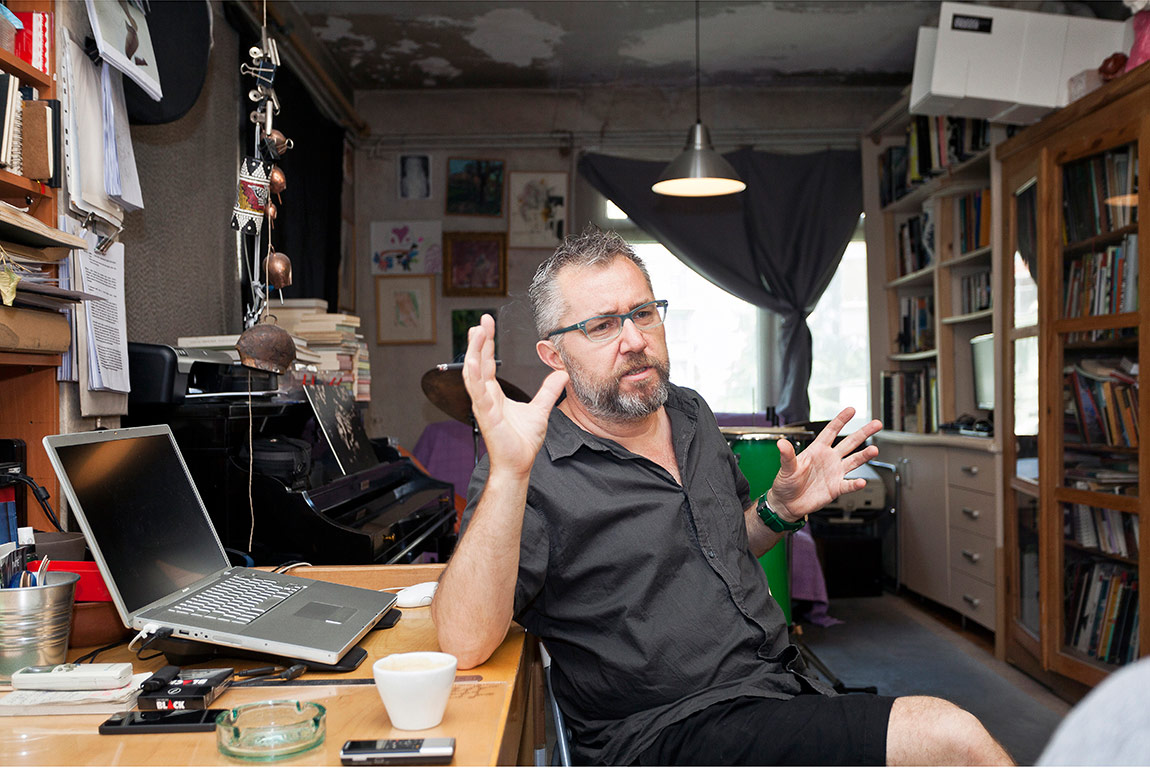 Bazen hiç çalışmam, buraya gelir otururum sadece, film seyrederim arkadaşlarımı ağırlarım. Burası sadece çalıştığım bir mekân değil açıkçası, nefes aldığım dostlarımı ağırladığım, bazen arkadaşlarla müzik yaptığımız, kimi zaman yemek yaptığımız, sohbet ettiğimiz, parti verdiğimiz bir alan. Onun dışında tabii ki çokça burada üretirim. Son zamanlarda fazla dışarı çıkmıyorum bile, sergiler ya da başka işler için karşıya geçmek zaten bir zulüm adeta. Atölye benim için bir mabet yeri gibi. Bir de beynimin içerisindeki birçok parça burada; kitaplarım, malzemelerim, kendi yarattığım beslenme kaynaklarım gibi.