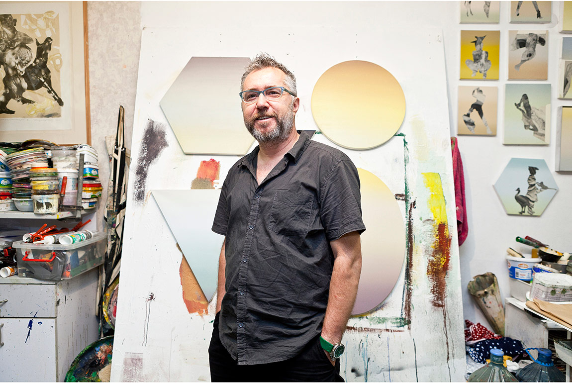 Benim aslında tek bir çalışma biçimim yok. Bu atölye inanılmaz deneysel bir mekân. Burada birçok farklı malzeme ve farklı tekniği deniyorum, bu sebeple birçok eser farklı çeşitlerde üretiliyor. Bazı eserler sırf desenden, bazıları da çektiğim fotoğraflar üzerinden ilerliyor, kimisinde kolajlarla çalışıyorum, kimilerinde de hepsi içiçe geçiyor. Yani o süreçte yirmi yıldır aynı şekilde boyamadığım için, hepsi birbirine geçti ve karmakarışık bir duruma geldi.