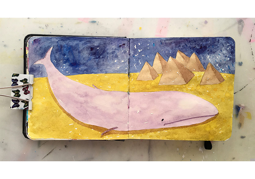 Balık imgesini yine sembol olarak bu projede de kullanıyorum. Geçip giden, kaygan zamanın metaforu olarak. Balina ise kütlesel bir zamanı ifade ediyor; insanlık tarihinin büyük bir bölümünü. Tarihin tekerrürleri üzerine daha sık düşünür oldum bu dönemde.
