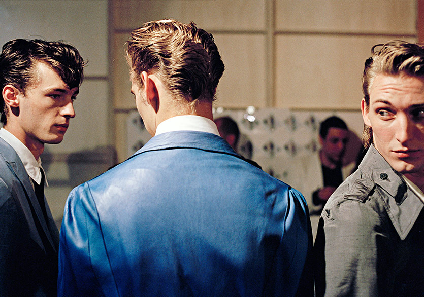 Avrupa’daki önemli bazı dergiler için ilk kez bu kulislere girmiştim, her dergi ya da her fotoğrafçının girebildiği yerler değildi. Müthiş dinamik bir hazırlık devam ederken doğal olarak o atmosferin bir parçası haline geliyorsunuz. Kendimi soyutlayıp sosyolojik araştırma yapmak yerine ben de var olan kurgularla ve kendi içgüdüsel sesimle hareket ettim. Modellerin kıyafetlerinden çok defileye çıkmadan önceki heyecanlarını ve yüzlerine yansıyan çesitli duyguları yakalamaya çalıştım. Sosyal medyanın ve fotoğraf çeken telefonların da olmadığı bir dönemden bahsediyoruz, dolayısıyla belgelenmesi pek mümkün olmayan hikâyelerin içerisinde gezdim.