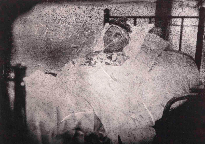 Yusuf Murat Şen ise bu şevkle kendini imgeleştirmiş, varlığının kaydını tutturmuş insanların fotoğraflarına yeniden hayat veriyor. Sergide yer alan tüm fotoğrafların ortak noktası, bir zamanlar ölümsüzlüğe inananların artık ölümlü olması. Yusuf Murat Şen’in bir bitpazarını dolaşırken üzerinde “24 adet” yazan bir zarf bulması, bu serginin serüvenini başlatıyor. 1930’lardan kalma olan bu zarfın içerisinde, ölüm döşeğinde bir adam ve onun yanında, en nötr halleriyle refakat eden genç bir kadın ve çocuk bulunuyor. İbrahim Selim adlı Girit göçmeni bir fotoğrafçıya ait olduğu düşünülen seride yer alan bu fotoğraf, aynı zamanda sergiye de adını veriyor: “Fading Away”. Bu isim ise Fade Away adlı, 1858 tarihli fotoğraftan geliyor. Fotoğrafın sahibi, adını fotoğraf tarihinde duymamanızın imkânsız olduğu Henry Peach Robinson. Robinson için aslında tabiri caizse ilk foto – montaj erbabı diyebiliriz. Sanatçı, fotoğrafın gerçekçiliği üzerinde yaptığı kurgusal kompozisyonları bir araya getirerek, fotoğraftaki imgesel gerçekliği yeniden sorgulatmaya başlamış.