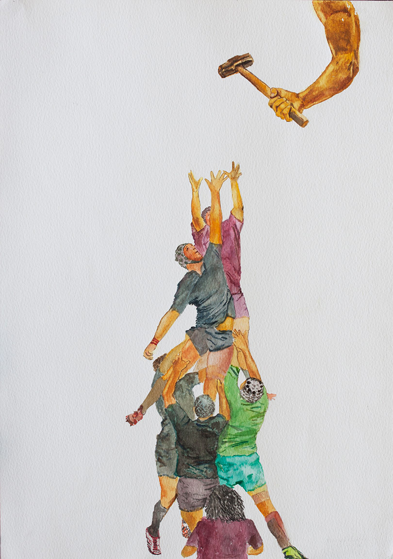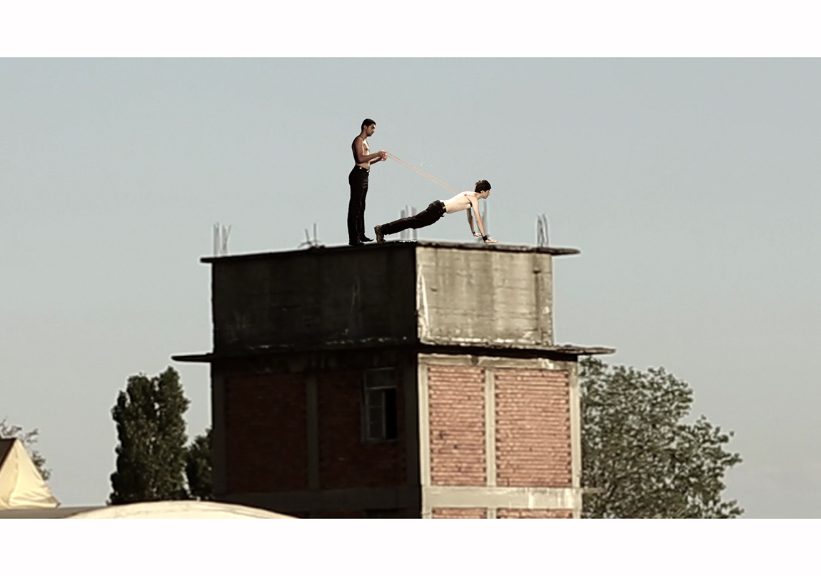 Kağıt üzerine çalışmalarında göze çarpan farklı kültürlerdeki dinsel söylemler ve ikonografik dil, “Günden Kalanlar” adlı performatif videodaki sahnelerle diyaloğa giriyor. Farklı anların üst üste/ yan yana gelmesiyle köklü bir bütün olan ve parça parça olanı aynı paydada ustalıkla birleştiren video, serginin adıyla hemhal olarak tuhaf bir biçimde bir hikayeye dönüşüyor. Kurgunun kemiğini oluşturan parçalı anlatım, Özgür’ün tüm üretimini hatırlatarak izleyene bildiklerini iade ediyor. Videonun bir yerinde birbirine değmeye çalışan parmaklar Michelangelo’nun 1511 yılında Sistine Şapeli'nin tavanına yaptığı Âdem'in Yaratılışı adlı freski hatırlatırken; video’nun genelinde hakim olan hizaya girme ve uygun adım yürüme ritüeli ile birlikte; din, asker ve erk üçgeninde birbirine yapışan olmazları ve varlığın üflendiği ana kaynağı ironik bir dille işaretliyor. Yaşam alan ve yaşam veren arasında geçen zamanda, olağanüstü hallerimize değinen “Günden Kalanlar” günlük ritüellerimizin ironik bir kaydı.