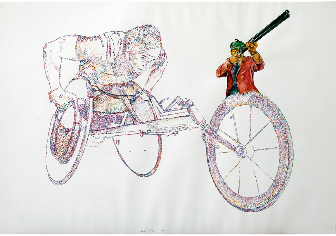 Ferhat Özgür’ün düşünce biçimi sahne kurmak üzeredir. Boyadığı, fotoğrafladığı yahut filme çektiği anlar, şartları baştan belirlenmiş bir sisteme bağlı organizmalardır. Bu canlı yapı izleyeni de için içine çeken bir çoğullukla varlıklarını devam ettirir.